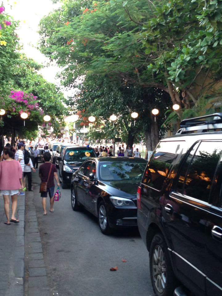 Khi ra đường, ông cũng là dân, tuy nhiên tháp tùng ông có tới cả một đoàn xe từ sang đến siêu sang trải dài nối đuôi nhau kín con phố cổ Hội An, mà đặc biệt là tuyến phố cấm hoàn toàn xe cơ giới. Sự việc xảy ra vào chiều ngày 08.08.2016