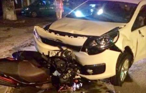 Vụ tai nạn xảy ra giữa ô tô BKS 63A-051.45 và 2 xe gắn máy. Theo một nhân chứng, vào khoảng 2 giờ ngày 7-8, ô tô BKS 63A-051.45 đi từ đường Lê Văn Phẩm quẹo phải ra đường Lý Thường Kiệt nhưng lấn sang trái sát dải phân cách cứng rồi mới quẹo phải, đâm thẳng vào sát lề phải đường Lý Thường Kiệt tông vào 2 xe máy đang đậu; làm 1 thanh niên chết tại chỗ. Sau khi gây tai nạn, 4 người xuống từ xe ô tô đều có mùi rượu.
