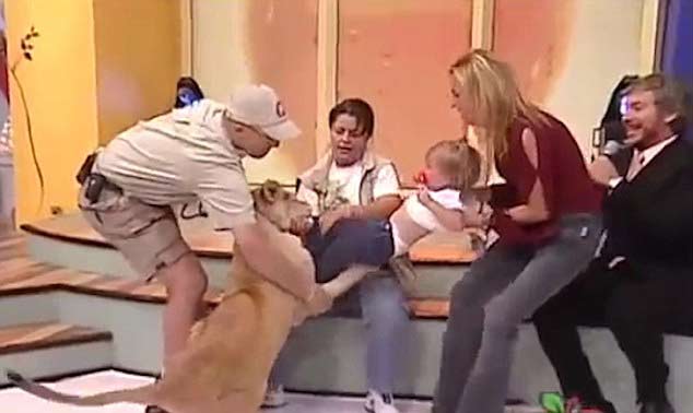 Một chuyện vô cùng sốc đã xảy ra trong show truyền hình trực tiếp của Mexico khiến người xem hết hổn. Con sư tử được huấn luyện bỗng nhiên chồm lênvồ lấy quần đứa bé và nhe răng đớp vào chân. Rất may mắn là cô bé không bị thương vì người coi thú đã khống chế được con sư tử.