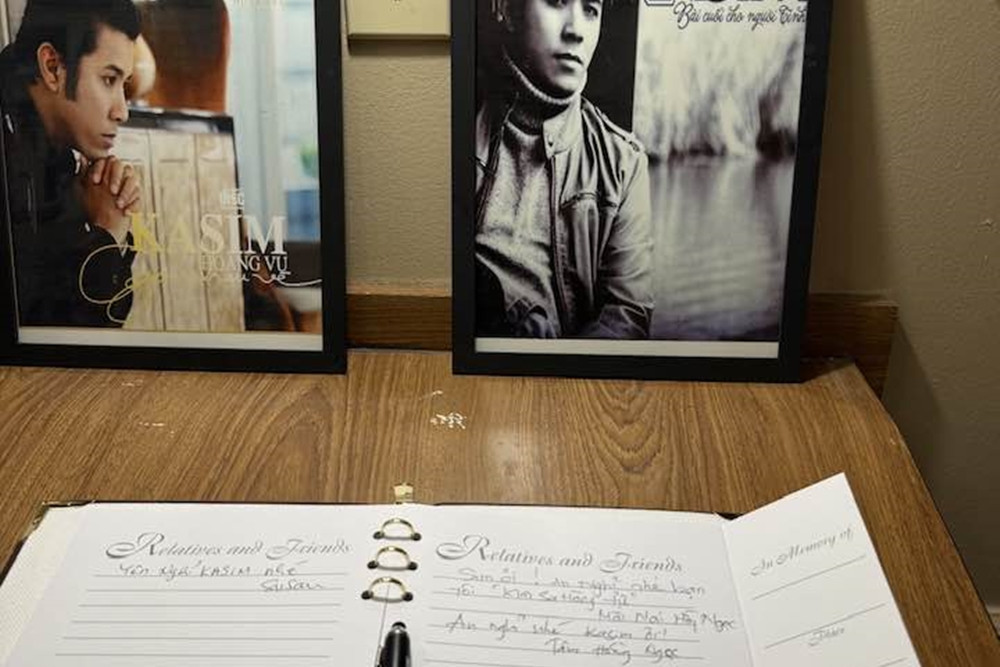 Ca sĩ Duy Trường, người bạn thân thiết với gia đình Kasim, xúc động ghi lại không khí tang lễ. Vợ chồng ca sĩ Hồng Ngọc lái xe từ Dallas đến cũng không giấu được nước mắt khi nhìn thấy Kasim lần cuối. Danh ca Hương Lan cũng đến thắp nén hương.