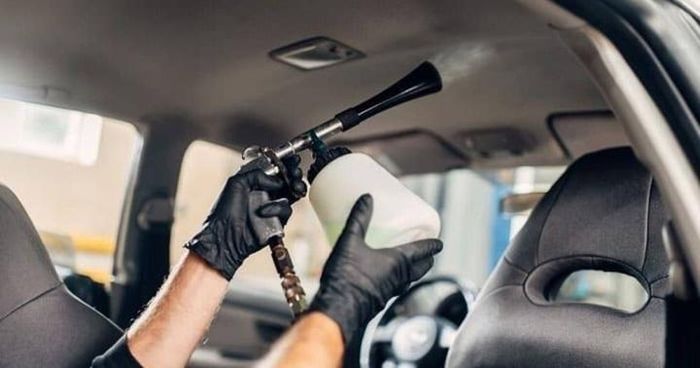 Để tạo mùi thơm dễ chịu trên xe, có thể sử dụng dung dịch khử mùi xịt lên trần xe.