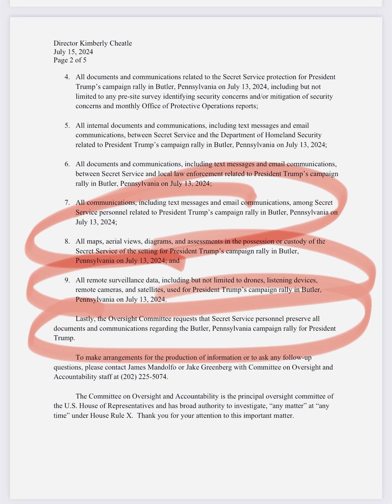 -Ủy ban minh bạch quốc hội yêu cầu bà/ông giám đốc Secret Service, Kimberly Cheatle ra tường trình trước uỷ ban vào ngày thứ hai tới về việc không hoàn thành trách nhiệm bảo vệ TT Trump. Nhưng tin tức cho biết ông bà này sẽ không đến vì áp lực từ bộ trưởng nội an và toà Bạch Ốc.