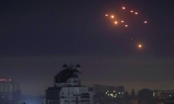 Đạn pháo phòng không trên bầu trời Kiev rạng sáng 26/5. Ảnh: Reuters